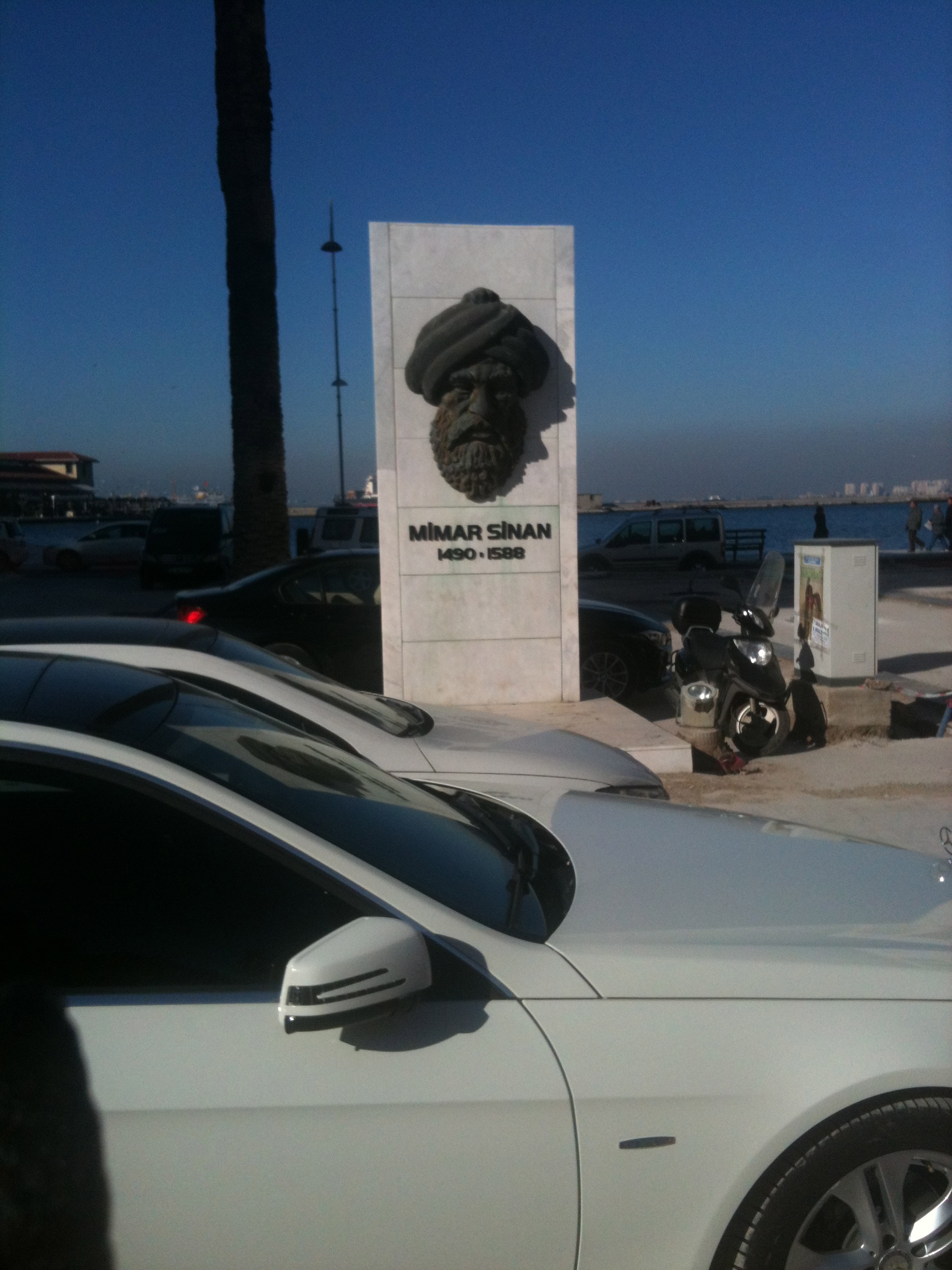 İlk karede Mimar Sinan’la uygarlığın buluşmasına tanıklık ettim. Fonda Mimar Sinan, yanında ve önünde teneke yığınları. Ortaya koyduğu yapıtlar dimdik ayakta olan Sinan dirilip de bir kaç söz söyleyecek olsa neler dökülürdü ağzından! Kendisinden 500 yıl sonra torunlarının budalalığına bir şeyler söylemeden duramazdı her zamanki bilgeliğiyle! Mimar Sinan büstü önünde kaldırım çalışması var! Umarım ve dilerim düzenlemeden sonra Mimar Sinan’la teneke yığınlarının yakınlığı kalıcılaşmaz!