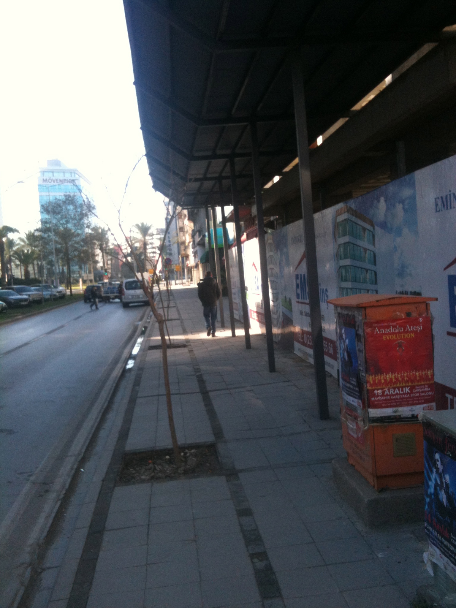 Biraz ileride bir inşaat. Biri bitip, diğeri başlayanlardan! Türkiye’de ve elbette İzmir’de inşaat karmaşa demektir. “Çevreye Verdiğimiz Rahatsızlıktan ötürü Özür Dileriz!” yazısı asmışlarsa öpüp de başınıza koyun! Yollar kapanır, kaldırım işgal edilir. Toz, toprak da cabası! İlk kez kuralı bozan bir manzara! Kaldırım olabildiğince yayalara bırakılmış. Eksikleri olsa da yayaların güvenliği akla getirilmiş! O kadar çok kötü örnek var ki! Eksikli de olsa fotoğraflanmayı hak ediyordu!