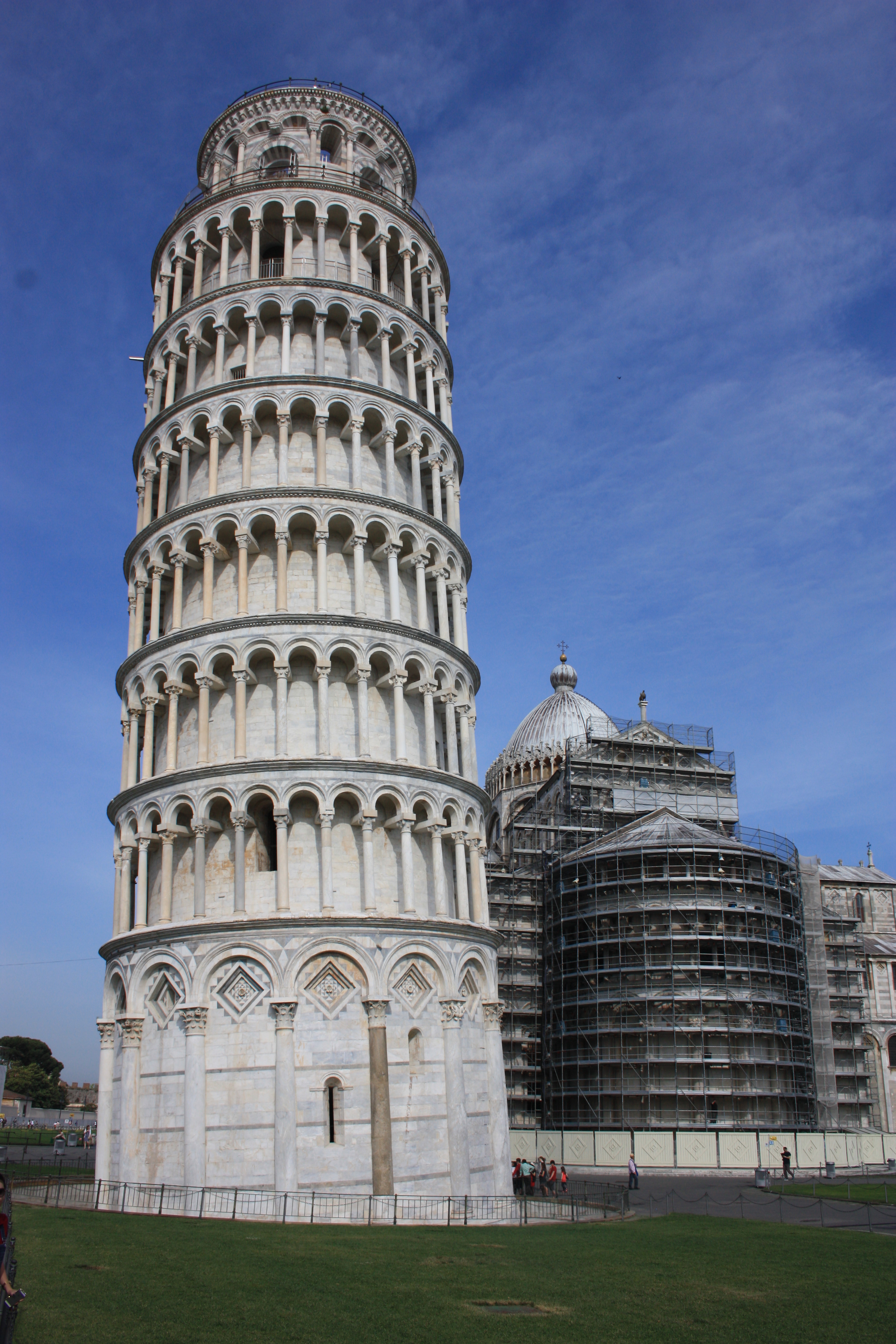 1173’te başlayan yapımı ortaçağda yükselen başka pek çok görkemli yapı gibi uzunca sürmüş! 199 yılda tamamlanabilmiş. Bu gecikmede yapımını izleyen yıllarda kendisini gösteren eğilmenin yanı sıra araya giren savaşlar ve parasal güçlükler de etkili olmuş. Bu molalar zeminin oturması fırsatı yaratması bakımından olumlu etki yaratmış. Kent devletlerinden oluşan o dönemin İtalya’sında görkemli kuleler yaptırmak askersel başarıların ve gönencin simgesi sayıldığı için pek çok kentin kule yarışına girdiğini söylemek olası. Cenova, Lucca ve Floransa bu rekabetteki önemli karşıtları olmuş Pisa’nın.