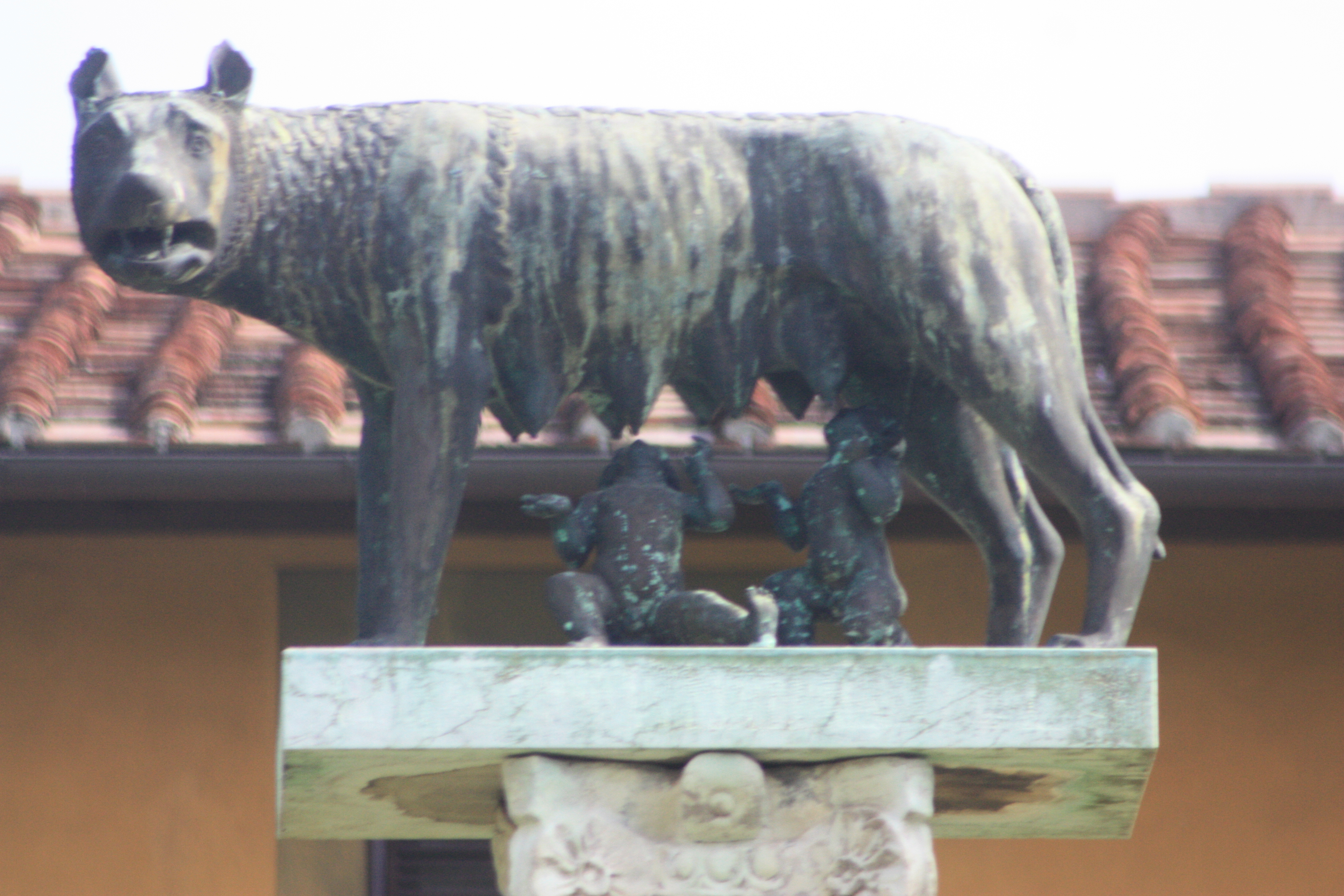 Kulenin hemen yanında çimlerin üzerine sere serpe uzanmış belden aşağısı olmayan kanatlı erkek figürü ve yine onun komşuluğundaki Remus-Romulus-Dişi Kurt üçlemesi meydanı süsleyen diğer yapıtlar olarak boy göstermekteler.