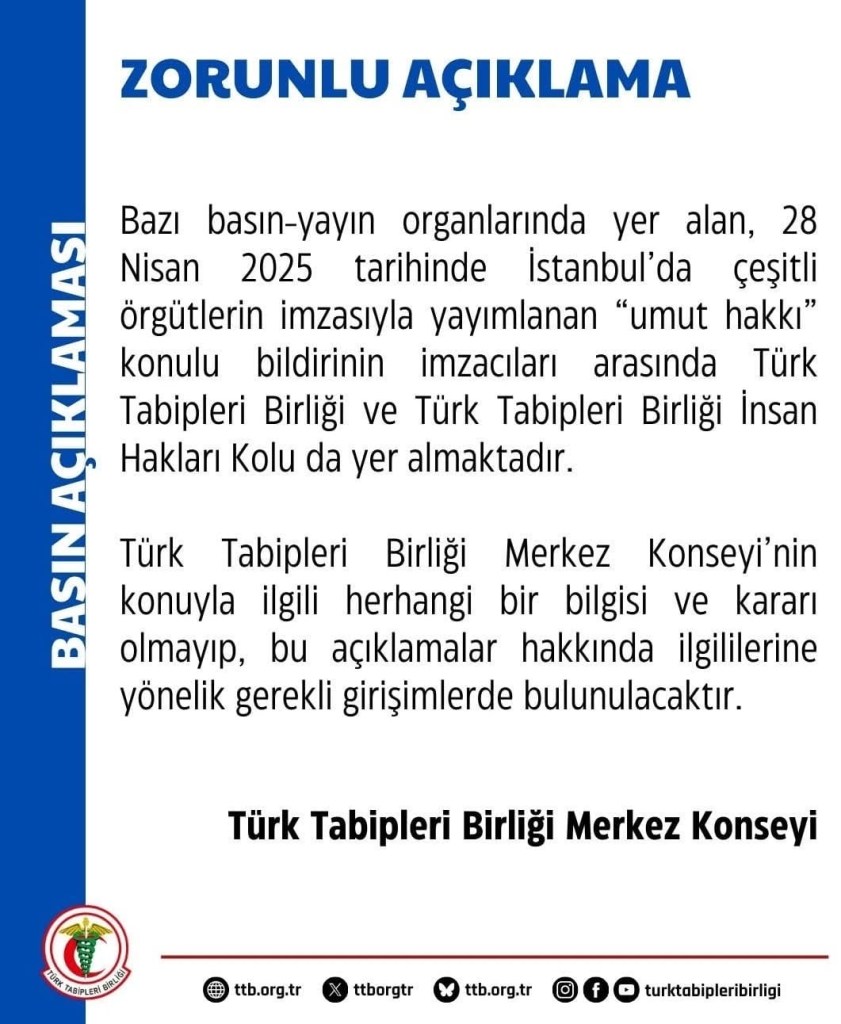 Bu hastalıklı anlayışı meslek kuruluşundan uzaklaştırmak ve TTB’yi var oluş nedenine döndürmek, ülkenin birliğine, dirliğine ve bütünlüğüne yönelik tehlikeli girişimlerden uzak tutmak kurumun gerçek sahibi hekimlerin önünde duran görevdir.