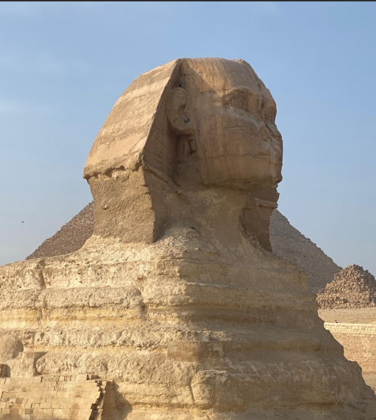 Giza’daki Keops, Kefren, Mikerinos ve diğer piramitlerle birlikte varlığını sürdüren sfenksten söz ediyorum.