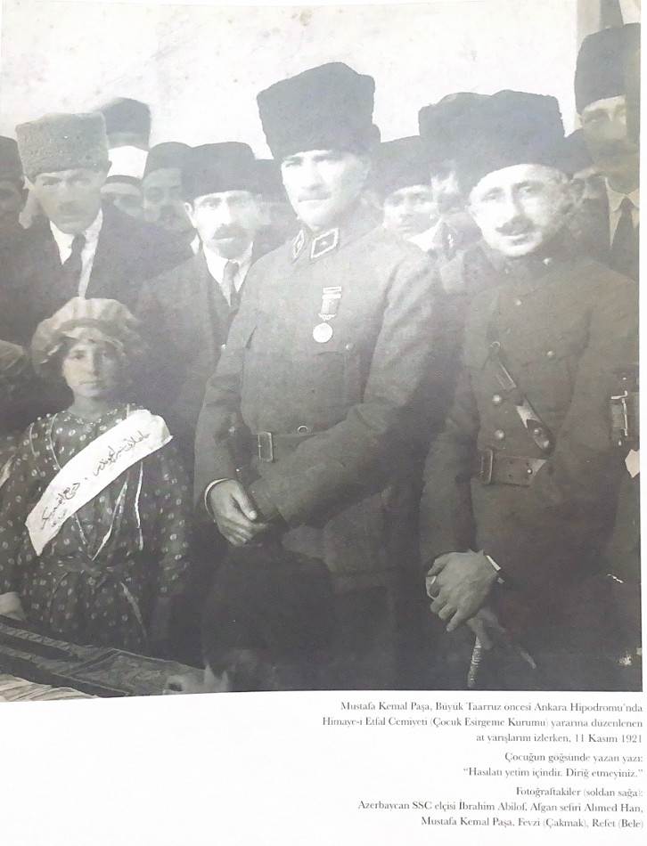 Türklerin 238 yıllık gerilemesine son veren Sakarya Savaşı sonrasında, 11 Kasım 1921’de Ankara Hipodromu’nda Himayei Etfal Cemiyeti (sonradan Çocuk Esirgeme Kurumu) yararına düzenlenen at yarışlarını izleyen Gazi’nin yanı başındaki çocuğun göğsündeki bantta yer alan yazı anlamlıdır :